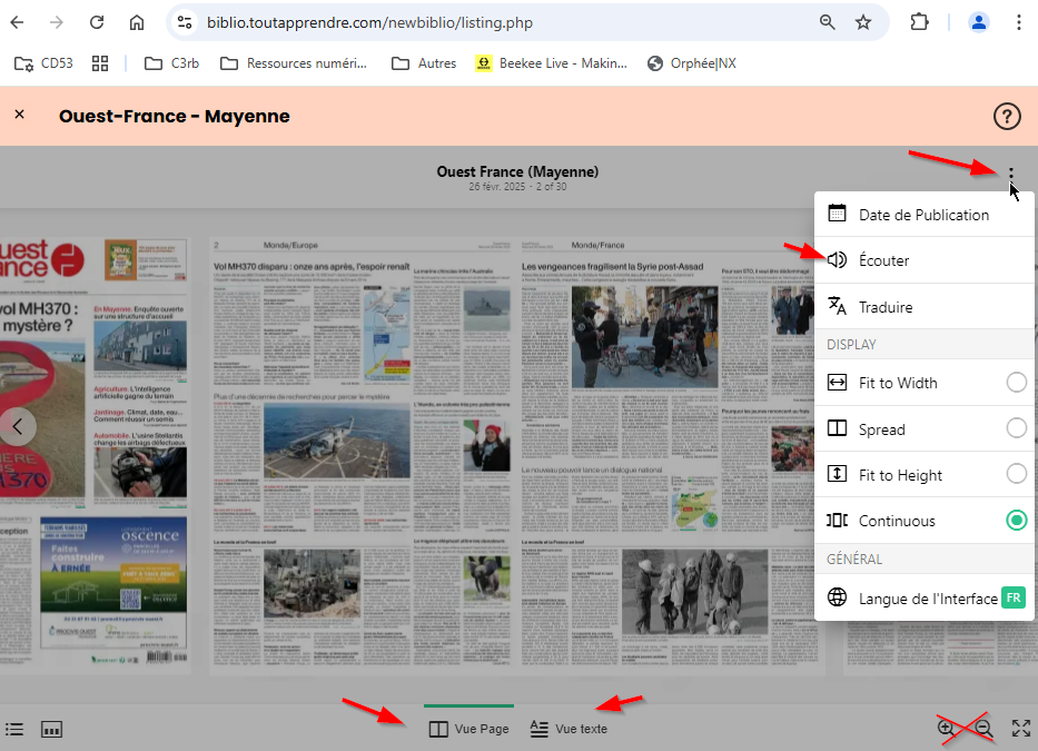 - 3ème astuce : un clic gauche sur le titre de l’article affiche l’article d’une autre manière pour en permettre la lecture. Cliquez sur Vue page en bas de l’article pour remettre la vue du magazine au complet.